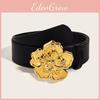 Pu Trendy Leather Waist Belt Women Flower Shaped Alloy Buckle Outdoor Decoration
