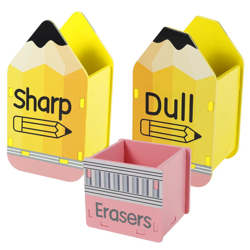 3 Stück Holz Stifthalter Kinder Schreibtisch Bleistift Radiergummi Aufbewahrungsbox für Schüler Büro Multifunktionaler Schreibwaren Organizer