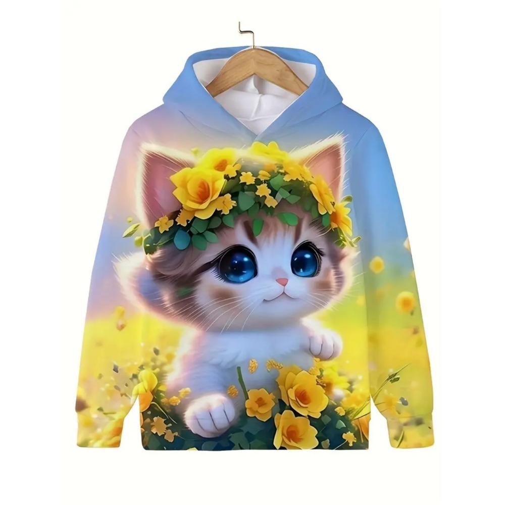 Kinderbekleidung Mädchenkleidung Kawaii Katze Langarm Kapuzenpullover Lässige Kinderkleidung Herbst Pullover Mädchen Sweatshirt Outdoor Oberteile