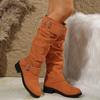 Women's Mid-Heel Knee-High Fashion Boots, British Style Suede Riding Boots, Plus Size Fall Winter Shoes
