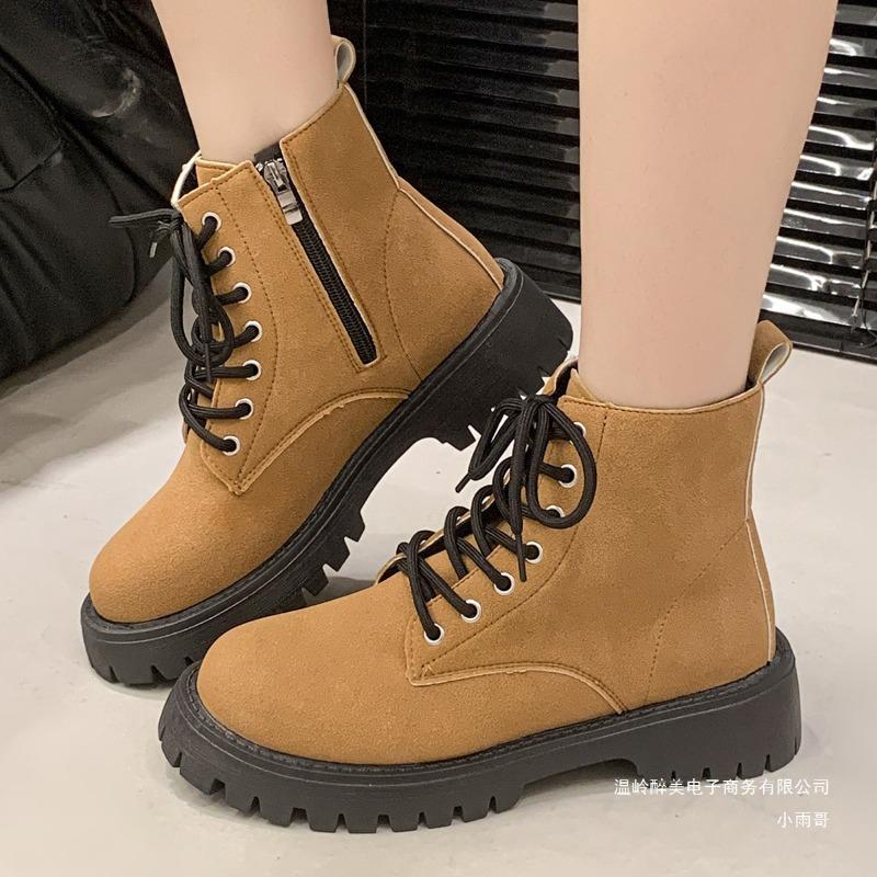 Grenzüberschreitende neue britische Stil große Größe kurze Martin-Stiefel Damen grenzüberschreitend quadratischer Absatz kurze Schnürstiefel dünne Lederstiefel