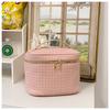 New portable storage bag pu woven cosmetic bag large capacity double zipper head portable travel box bag