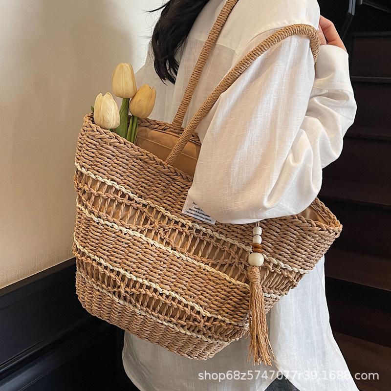 Seaside vacation leisure large-capacity woven bag 2025 summer new Korean version fashion straw bag versatile shoulder bag