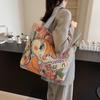 2025 Bestickte Cartoon Canvas Tragetasche: Damen Casual Schulterhandtasche mit großer Kapazität