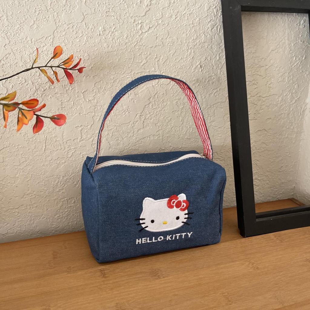 KT Katzen-Print Denim Lunch Tragetasche und Make-up Handtasche