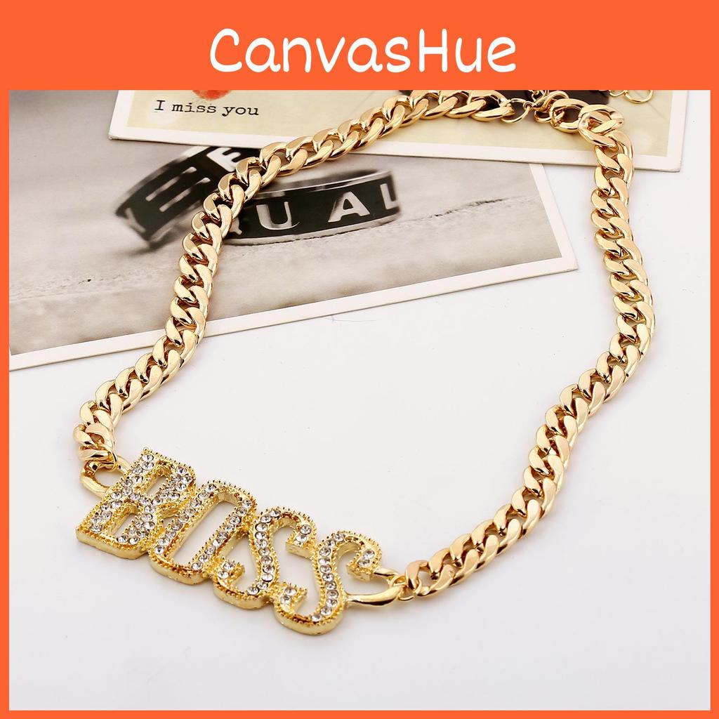 Decorated Fashionable Rhinestone Metal Letter Women Necklace For Looks Trendy