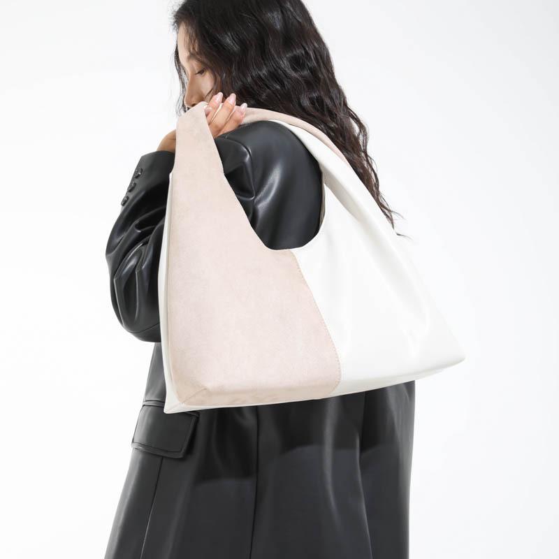 Damen Tragetasche mit großem Fassungsvermögen - Winter 2025 Schlichte Mode, vielseitige Colorblock-Schulter- und Achseltasche