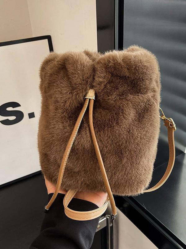 Damen 2025 Flauschige Fell Bucket Bag – Herbst/Winter Schulter Crossbody