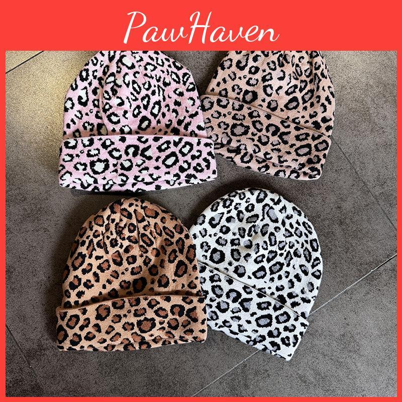 Hat Fashion Knit With Leopard Print Design Suitable For Daily Seasons Cold