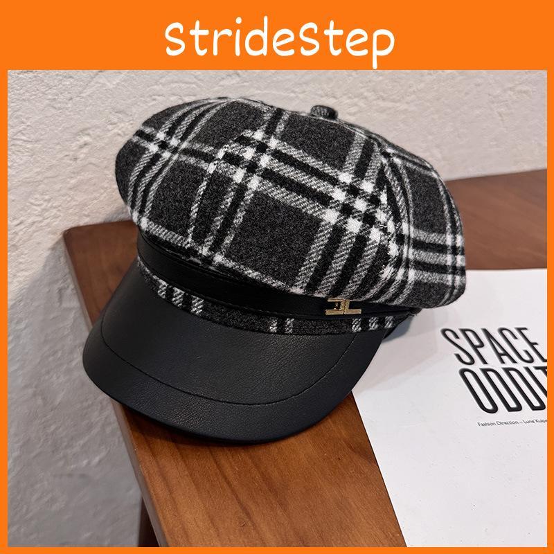 Fall Winter Trendy Plush Octagonal Beret With Grid Design For Womens Fashion