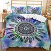 Traumfänger Bettbezug Set Grüne Federn Bettdeckenbezug Grüne Streifen Bettwäsche Set Indischer Stammesstil Polyester Steppdeckenbezug