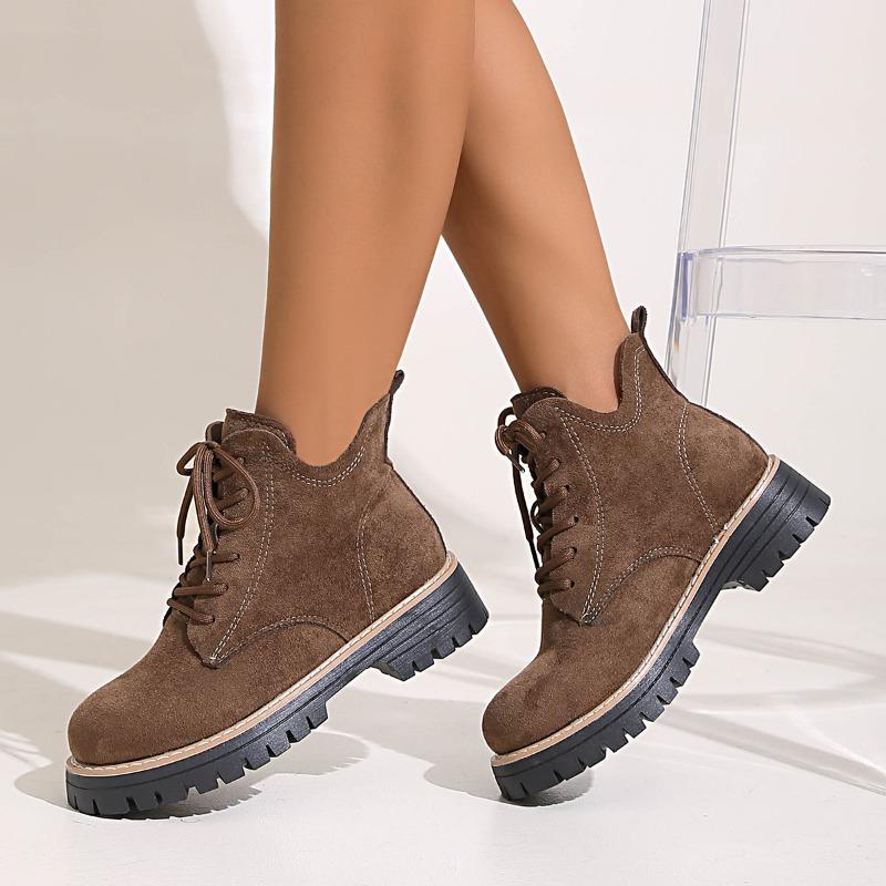 Winter 2025 Neue Runde Zehen Schnürung Martin Stiefel Britischer Stil Übergröße Retro Plateau Muffin Stiefel für Damen