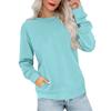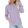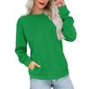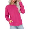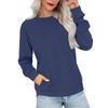 Damen Casual Mode Einfarbig Rundhals Langarm Sweatshirt Leichter Pullover mit Seitentaschen Warmes Sweatshirt