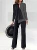 Dieses elegante zweiteilige Set ist für die moderne Frau entworfen, die sowohl Stil als auch Komfort schätzt.. Das langärmlige Oberteil mit einem markanten Colorblock-Muster, gepaart mit passender Hose, bietet einen schicken und sportlichen Look, ideal für die Frühlings- und Herbstsaisonen.. Hergestellt aus leichtem Chiffonmaterial, sorgt es für eine bequeme Passform und strahlt gleichzeitig Raffinesse aus.. Die hinzugefügte Druckdekoration unterstreicht seinen modischen Reiz und macht ihn zu einer vielseitigen Wahl sowohl für zwanglose Ausflüge als auch für stilvolle Zusammenkünfte.