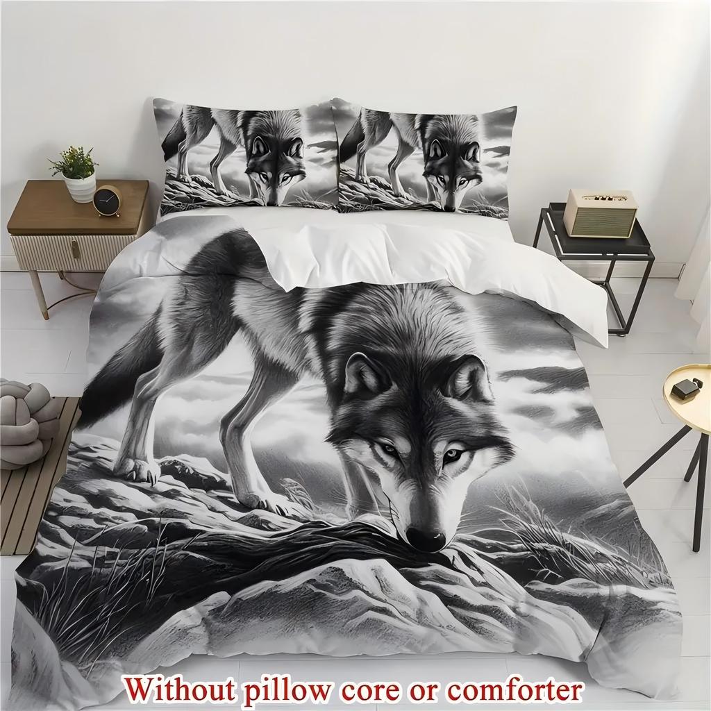 Black White Sketch Wild Wolf 3D Printed Duvet Cover Soft Comfortable Bedding Set Wildlife Nature Style Quilt Cover Pillowcases