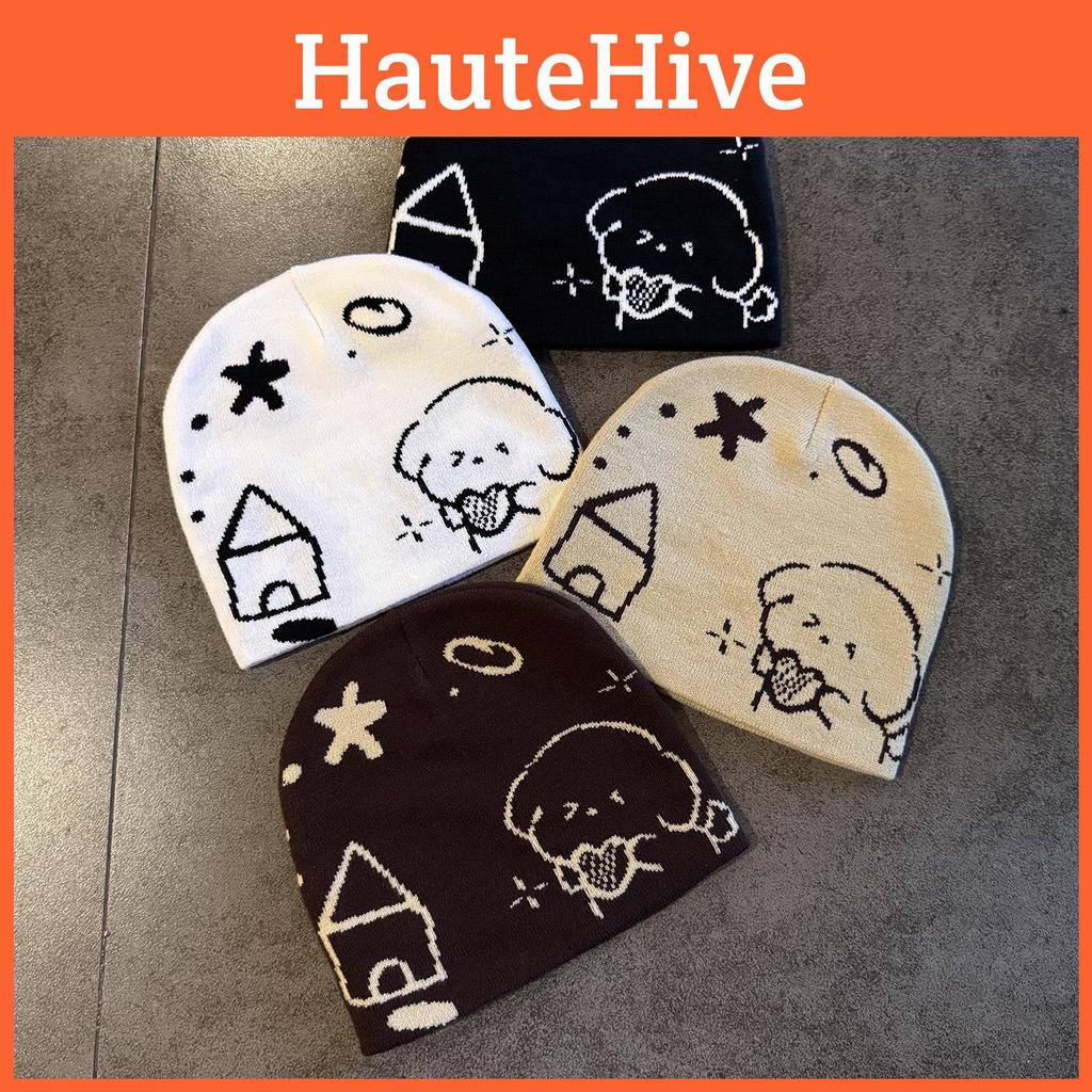 Cartoon Jungen Mädchen Hund Strickmütze Mit Wärme Und Lässigem Stil Für Herbst Und Winter