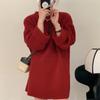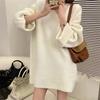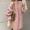 Herbst und Winter Übergröße Pullover Damen Lazy Style Weich Wachsartig Oberbekleidung Einfarbig Locker Mittellanger Pullover