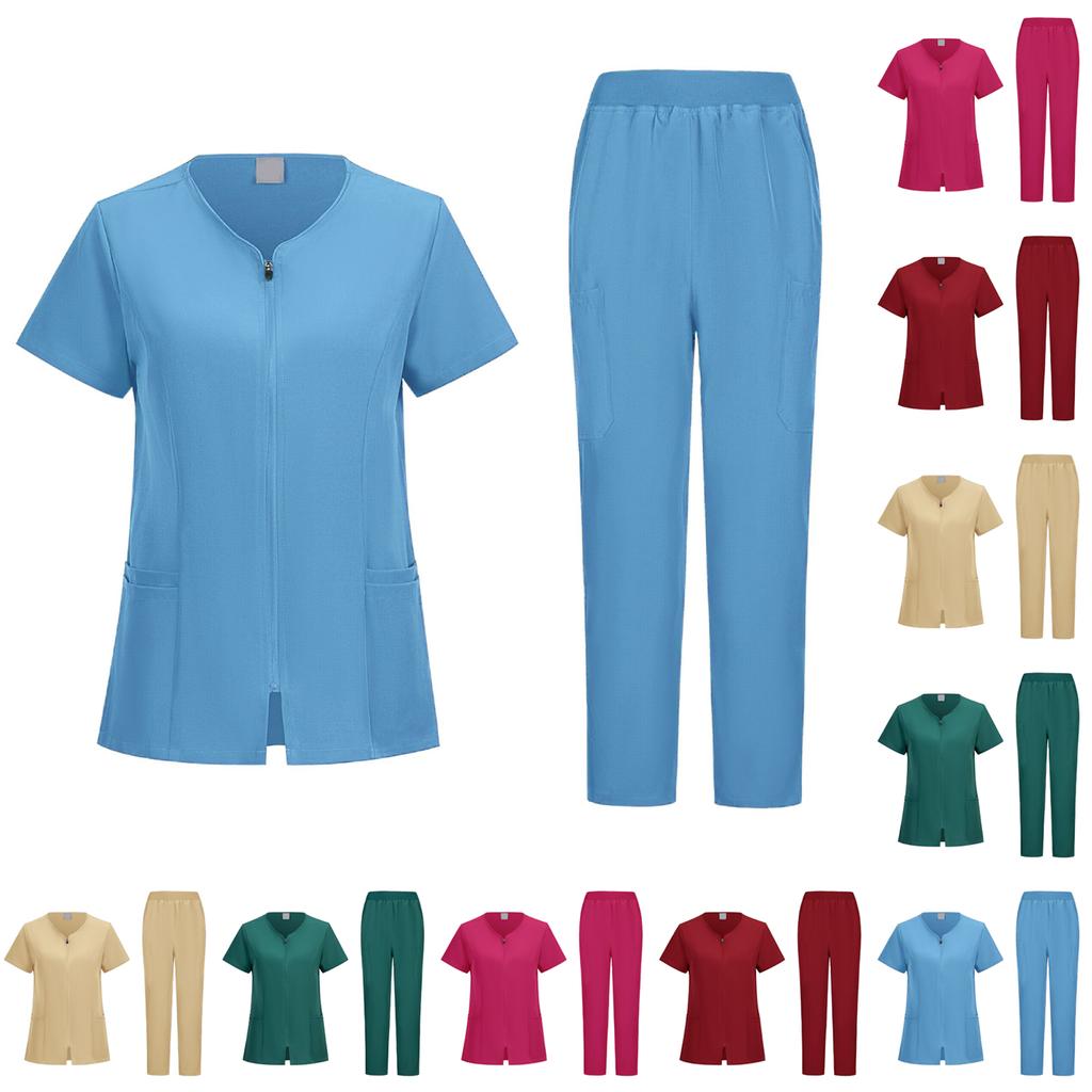 Damen Bequemer Und Lässiger Einfarbiger Kurzarm Hosen Schutzanzug Set