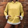 Damenmode Einfarbig Langarm Kapuzenpullover mit Spitzenbesatz und Tasche Lässiges Pullover-Sweatshirt-Top