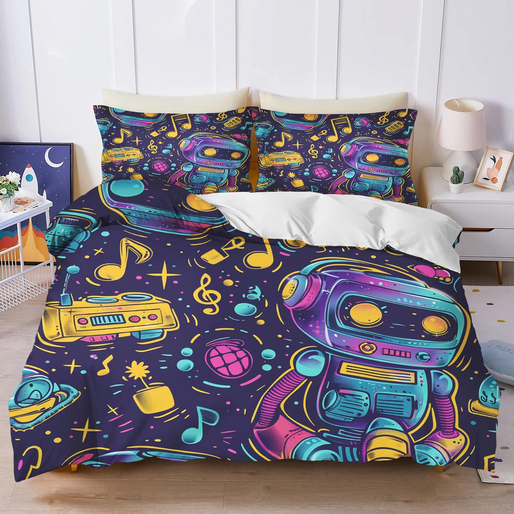 Bettwäsche Set Roboter Für Kinder Jungen Bettwäschesets Zuhause Twin 3-teiliges Set 1 Bettbezug Luxus 100% Polyester Modern Bedruckt