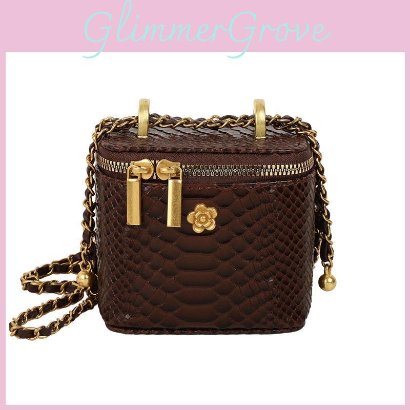 Fashion Texture Crocodile Women Casual Small Square Bag With Golden Chain