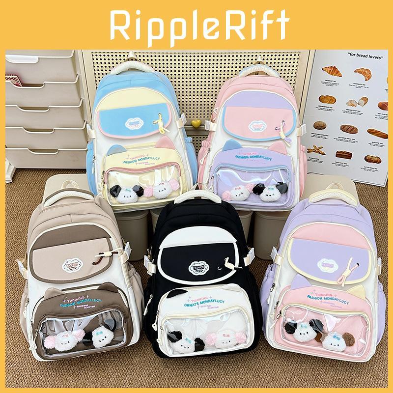 Capacity Large Backpack With Cats Ears And Letter Embroidery Design For Daily