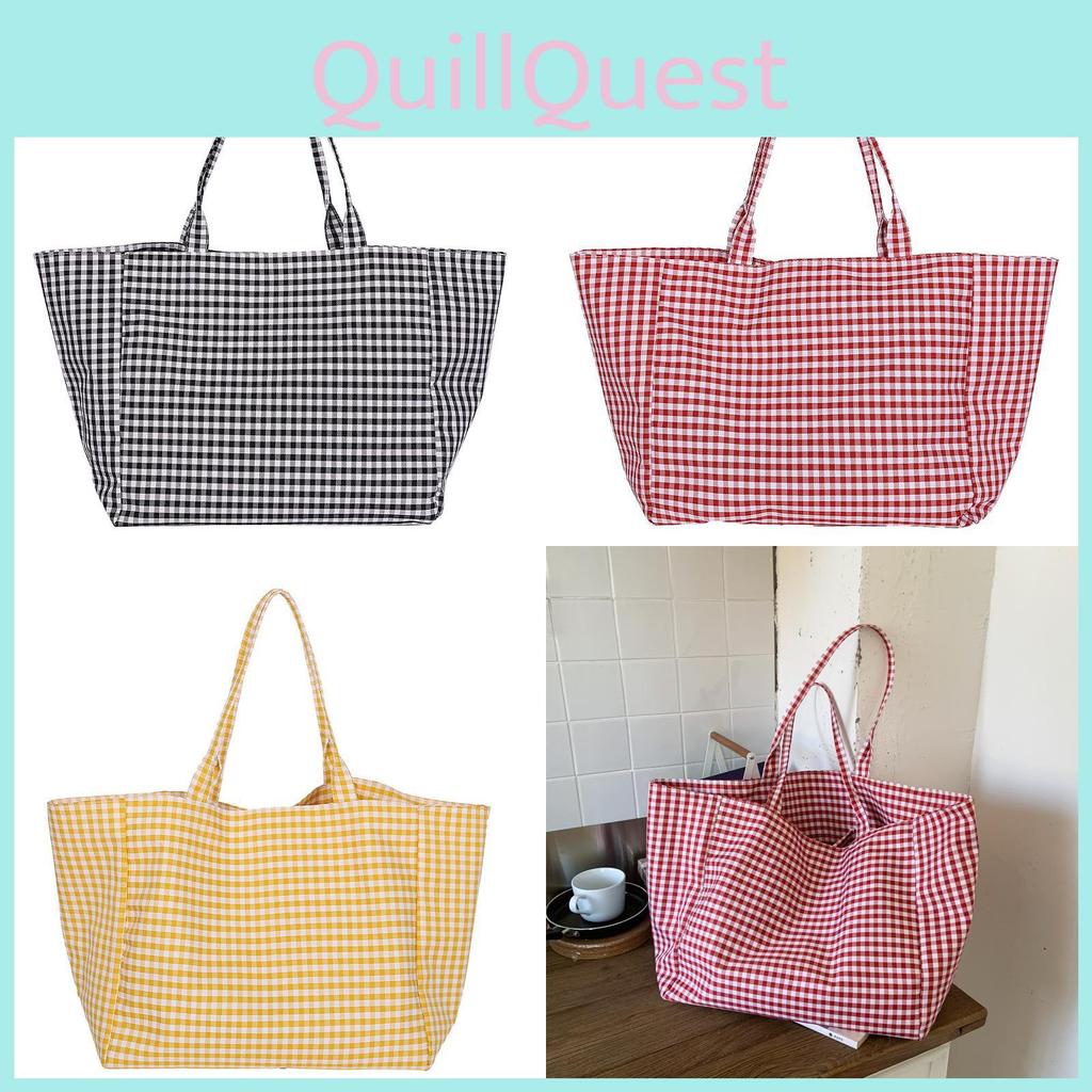 Checkered Simple Pattern Large Capacity Women Casual Canvas Tote Bag For Daily