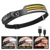 LED COB Stirnlampe USB Wiederaufladbar Super Hell Camping Taschenlampe XPE Bewegungssensor Dimmbares Licht Für Outdoor Wandern