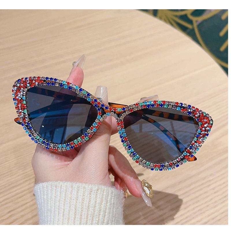 Cat Eye Sunglasses Diamond Fashion Sun Glasses For Women Black Lens Sexy Famale Outdoor Vintage Eyewear Shades Uv400