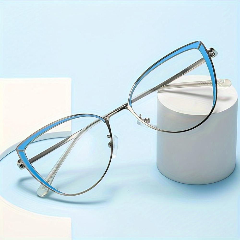1 Pair Of New Color Changing Anti Blue Light Glasses Metal Cat Eye Holder Women'S Fashionable Glasses