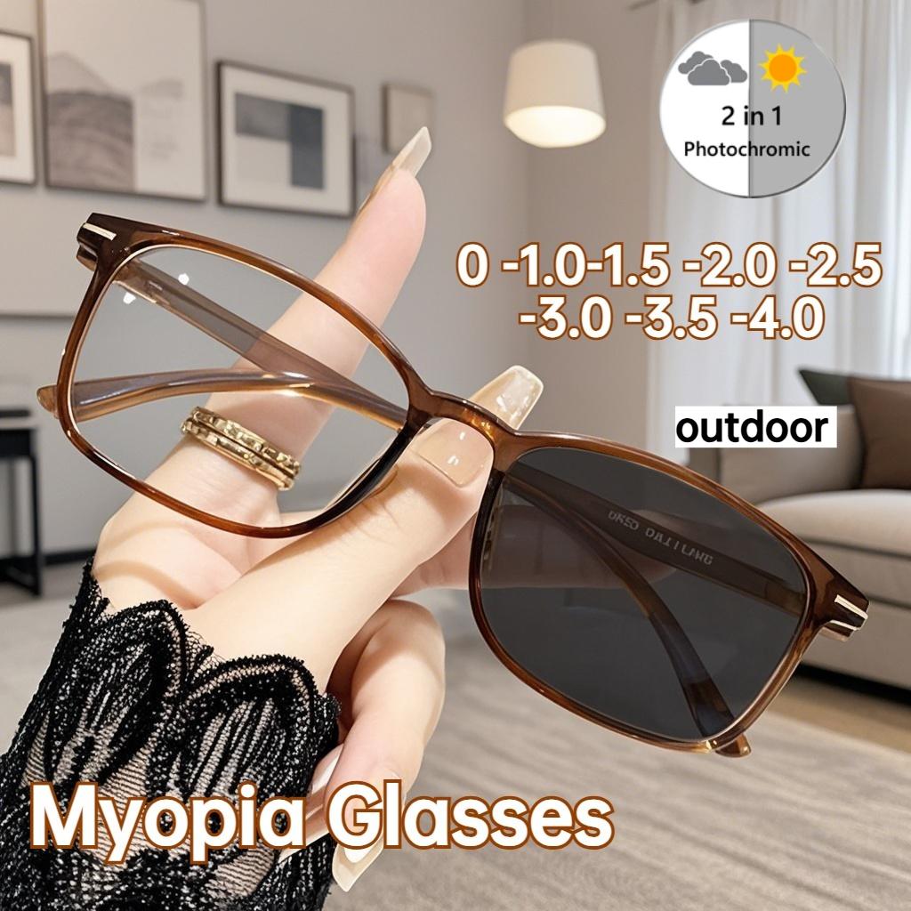 Unisex New Fashion Small Square Frame Photochromic Myopia Glasses Classic Retro Ultra-Light Anti-Blue Light Glasses 0 To -4.0