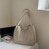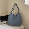 2025 autumn new solid color women's shoulder bag simple literary style canvas handbag large capacity shopping bag