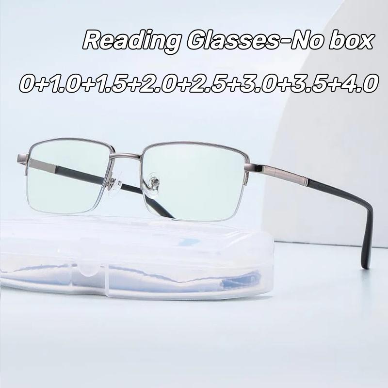 Men'S And Women'S Metal Half-Frame Presbyopia Glasses Stylish Business Square-Frame Blue Light Blocking Reading Glasses