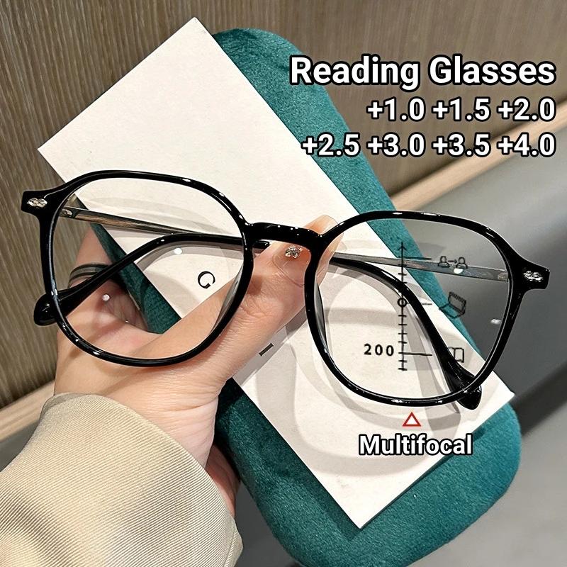 Vintage Polygonal Multifocal Reading Glasses Large Frame Presbyopia Glasses For Both Near And Far Use Anti Blue Light Eyewear
