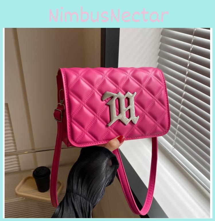 Letter Fashionable Silver Decorated Checkered Texture Women Shoulder Bag Square