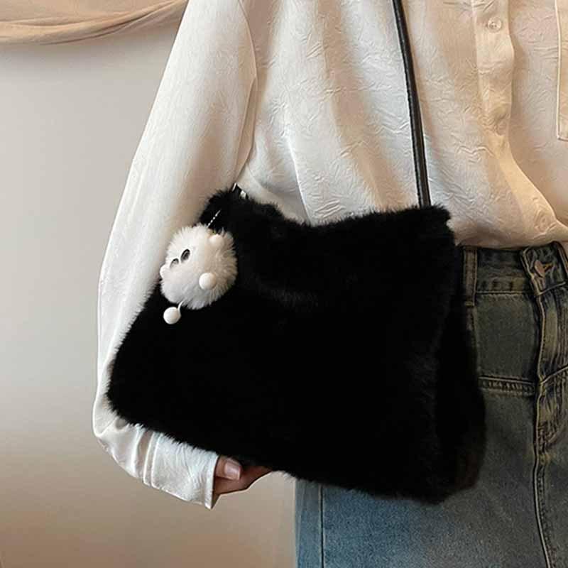 Korean version of ins niche design plush bag women's 2025 new foreign style large-capacity tote bag one-shoulder crossbody bag