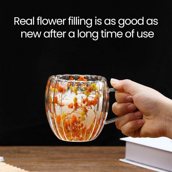 Optisch atemberaubend: Verziert mit lebhaften Trockenblumen und bunten Perlen in seinem transparenten Körper, strahlt diese verbrühungssichere Glasteetasse einen fesselnden visuellen Charme aus. Jede Tasse ist ein einzigartiges Meisterwerk, das eine verträumte Ästhetik schafft, die Ihrer täglichen Routine eine künstlerische Note verleiht und jeden Schluck mit Freude und Romantik erfüllt.