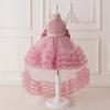 Kinderkleid Schleppen Prinzessinkleid Neckholder Mesh Tutu Rock Kuchenkleid Laufstegkleid Klavieraufführungskostüm