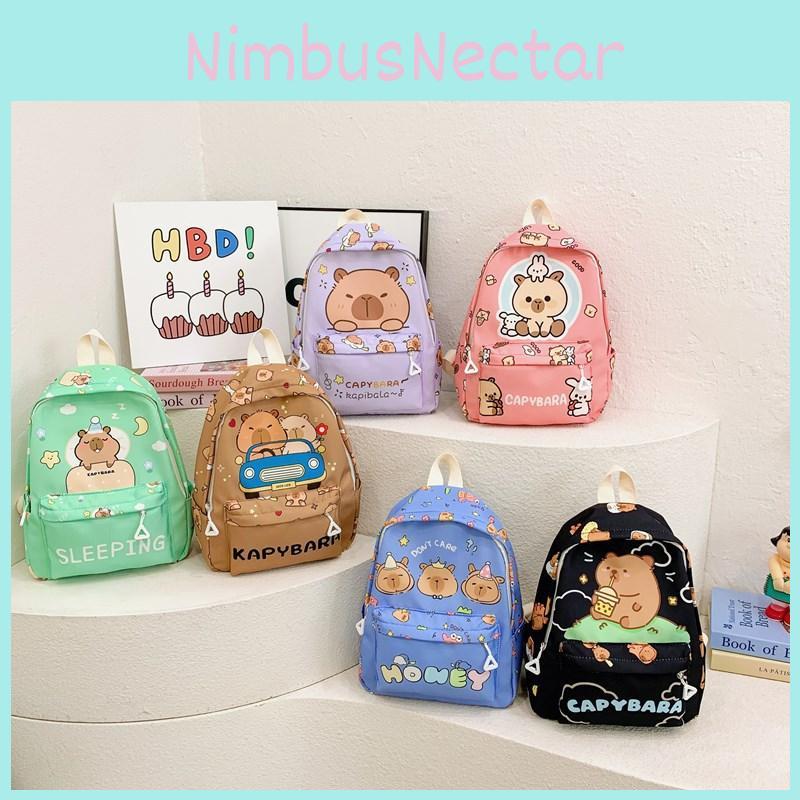 Animal Charming Print Capybara Backpack Breathable Nylon Kids School Bag For Preschool And Children Young