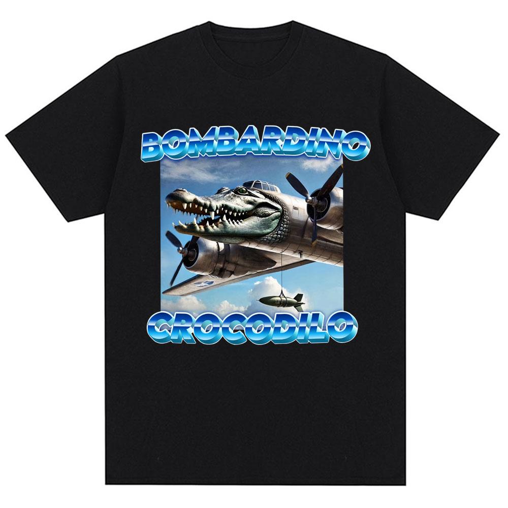 Bombardiro Krokodil Gator Lustiges Meme T-Shirt Humor Italienischer Hirnfraß Vintage Neuheit Geschenk T-Shirts Mode Locker Baumwoll T-Shirts