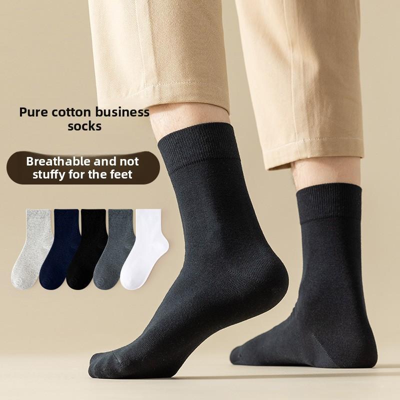 Men's Spring and Autumn Pure Color Business Breathable Sweat Absorbing Tube Cotton Socks