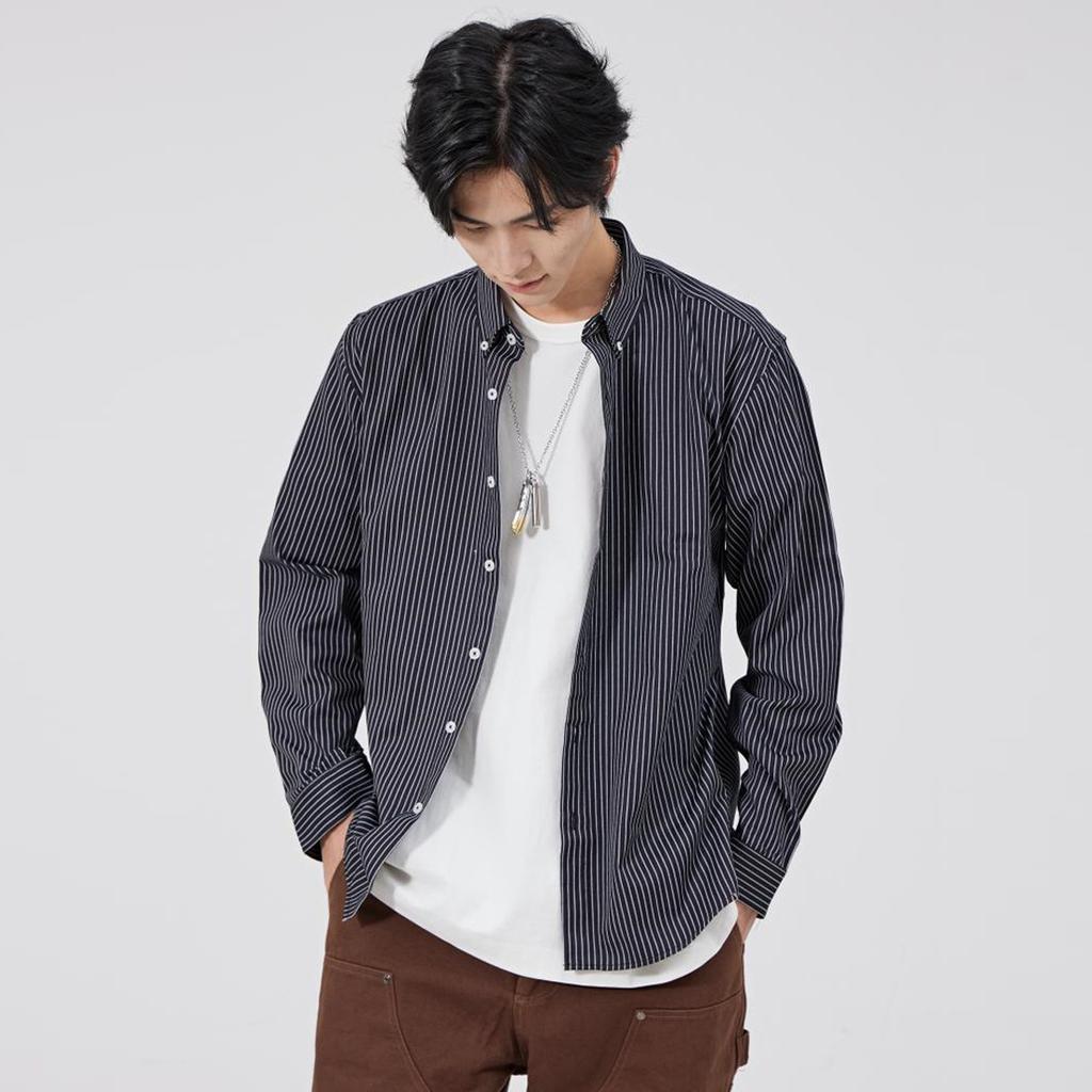 Herren Herbst/Winter Grau Lässig Gestreiftes Slim Fit Jugend Baumwolle Revershemd Mantel Hemd