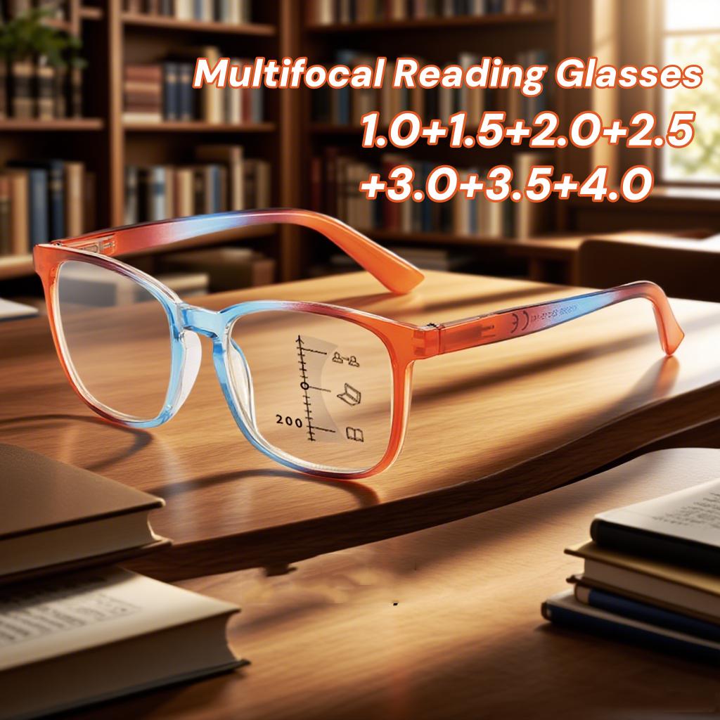 Fashion Gradient Color Multifocal Reading Glasses Women Men Blue Light Blocking Presbyopia Glasses New High-Definition Eyewear