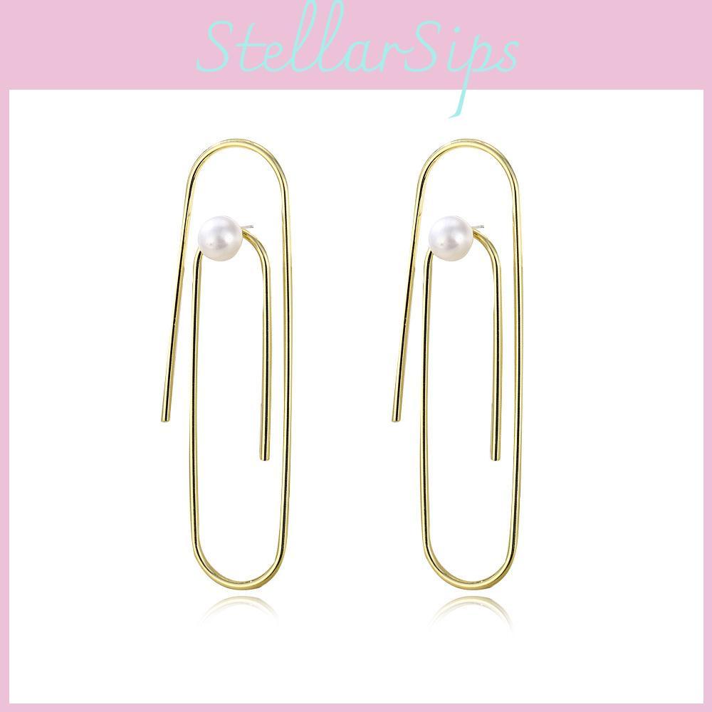 Unique U-Shaped Design: Stand out with these eye-catching, U-shaped pin earrings featuring elegant pearls.