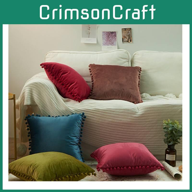 Solid Dutch Velvet Color Pillow Cases Pompom Edging Cushion Cover Living Room