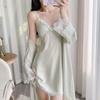 Gönnen Sie sich ultimativen Komfort und Eleganz mit diesem luxuriösen Pyjama-Set aus hochwertigem Kunstseidenmaterial, das die einzigartige Kühle von Eis-Seide bietet.. Das Set, entworfen mit einem raffinierten Spitzen-V-Ausschnitt und ärmellosem Stil, bietet eine reizvolle Kombination aus Stil und Bequemlichkeit.. Zusätzlich bieten eingearbeitete Brustpolster dezenten Halt, was es ideal für entspanntes Lounging oder ein stilvolles Schlaferlebnis macht.. Perfekt für diejenigen, die sowohl Komfort als auch Ästhetik in ihrer Nachtwäsche schätzen.
