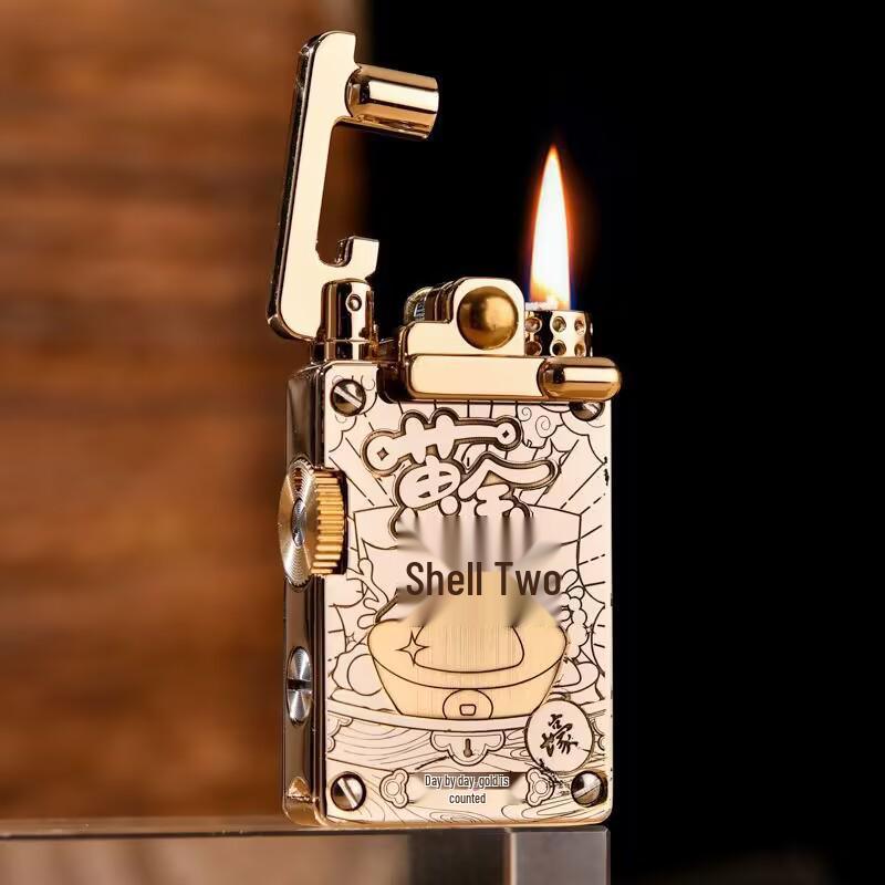 CHIEF CF708 Brass Engraved Windproof Kerosene Lighter with Rocker Ejection Ignition