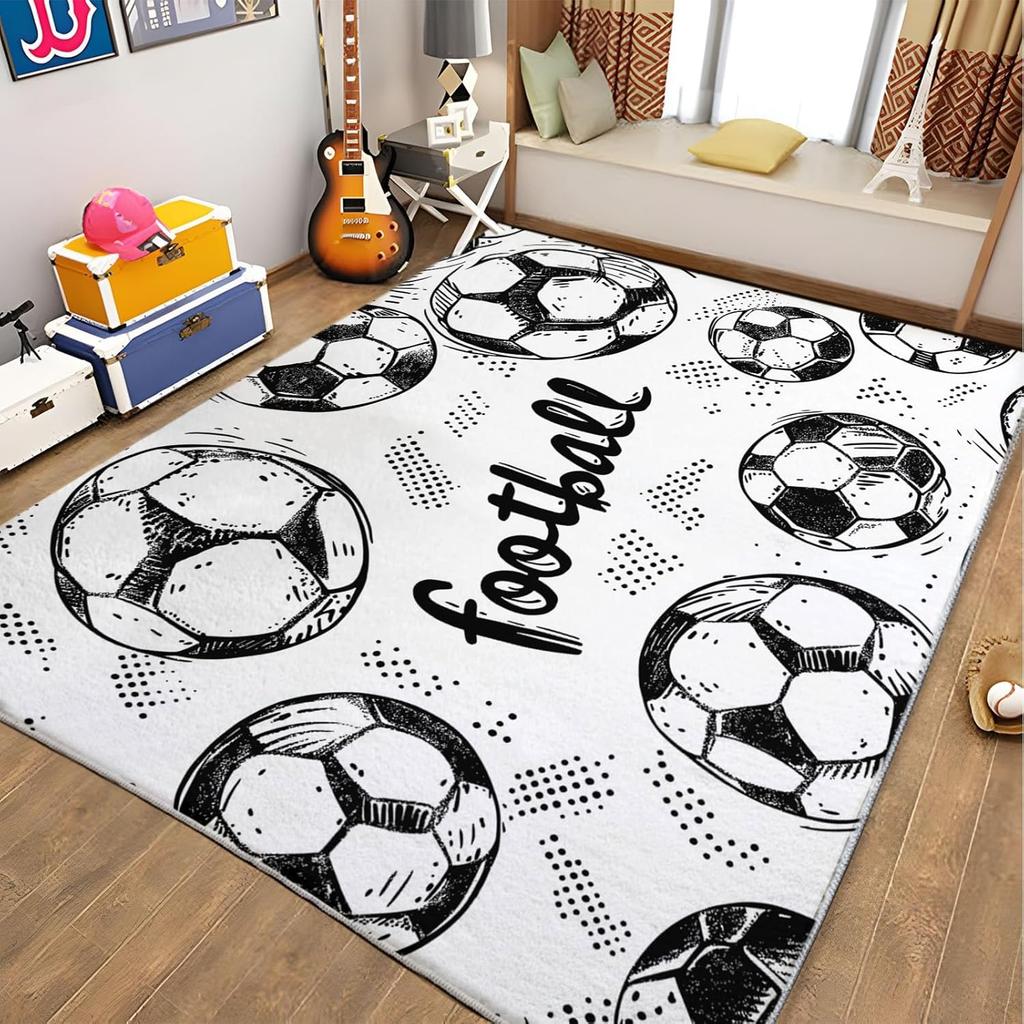Stilvoller Teppich mit Fußballmotiv – Weiche rutschfeste Bodenmatte für Kinderzimmer & Wohnzimmer | Strapazierfähiger Spielbereichsteppich für junge Sportfans