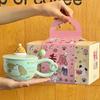 Gebt Mädchen Geburtstagsgeschenke, Cartoon-Hasenbecher, hochwertige Keramiktassen mit Deckel und Löffel und Geschenkboxen.