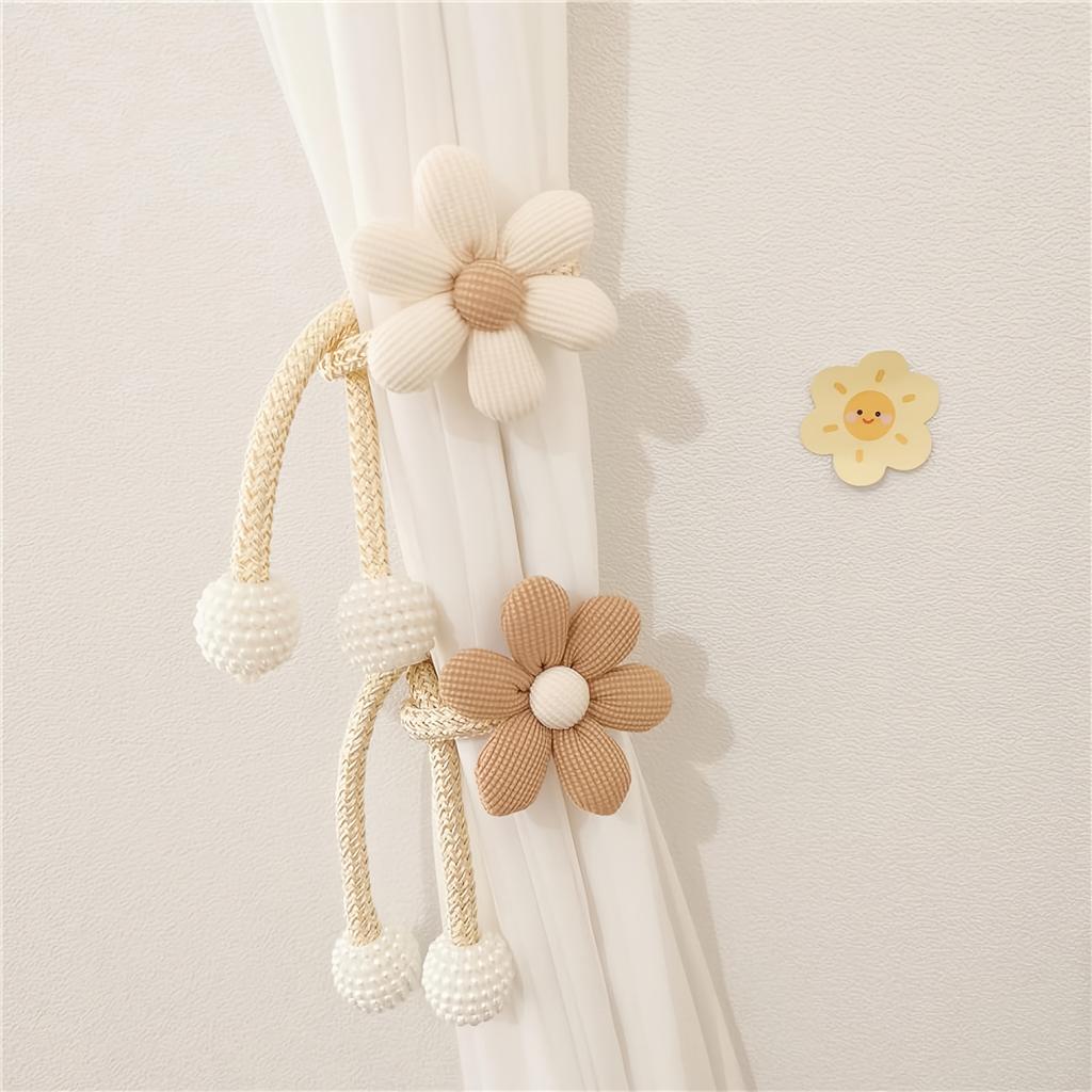 2 STÜCK Vorhanghalter | Boho Blumen Vorhanghalter | Schlichte Elegante Sonnenblumen Vorhanghalter | Boho Schlafzimmerdeko